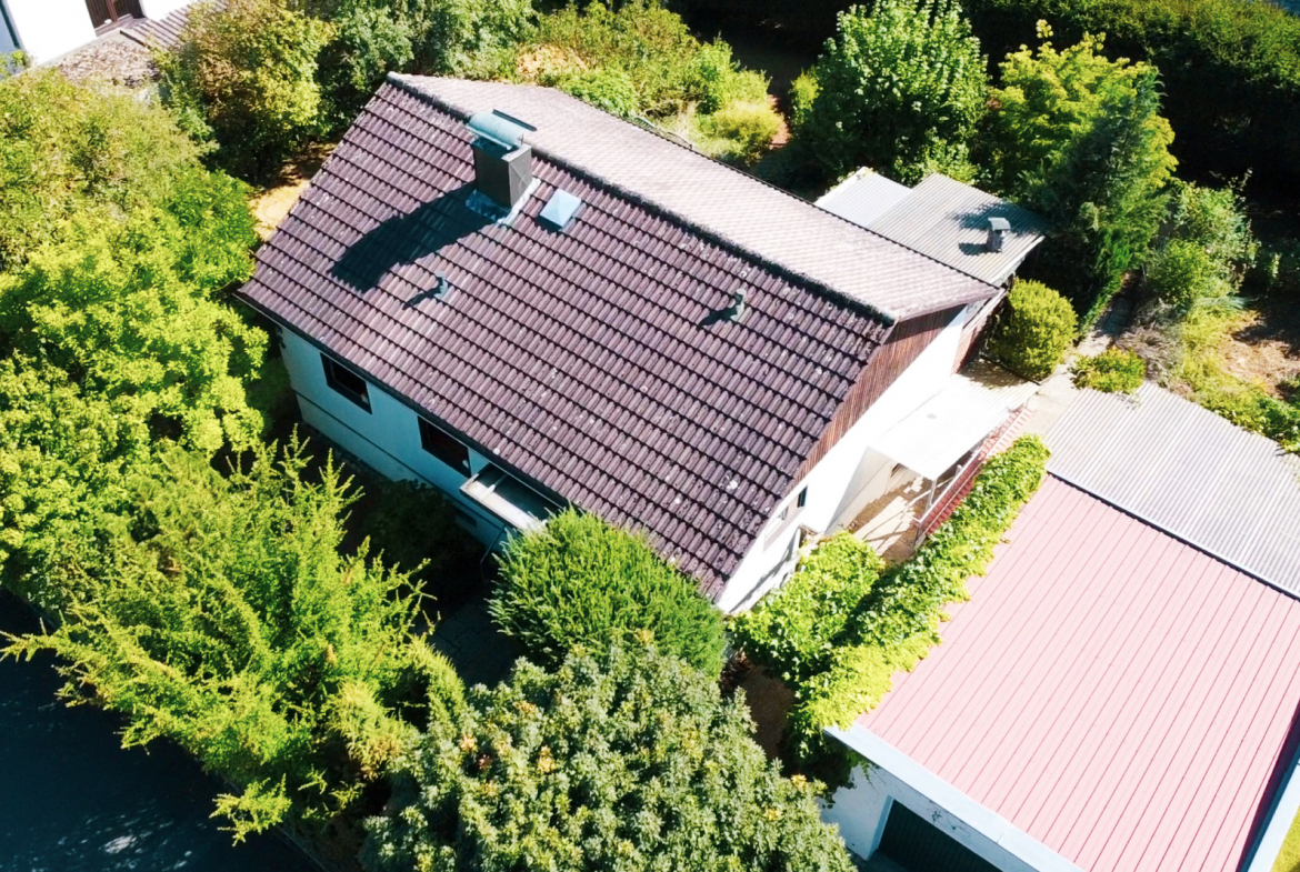 Zum Verkauf steht ein freistehendes Einfamilienhaus, das durch seine hervorragende Lage, den nahezu blickdichten, großen Garten und den attraktiven Verkaufspreis besticht. Es handelt sich um ein OKAL-Haus in Fertigbauweise, das in puncto Beständigkeit und Dämmung durchaus mit Massivhäusern mithalten kann oder diese sogar übertrifft. Ein weiterer Vorteil dieser Bauweise sind die einfacheren Grundrissänderungen. Fundament, Keller und Kellerdecke sind massiv ausgeführt.