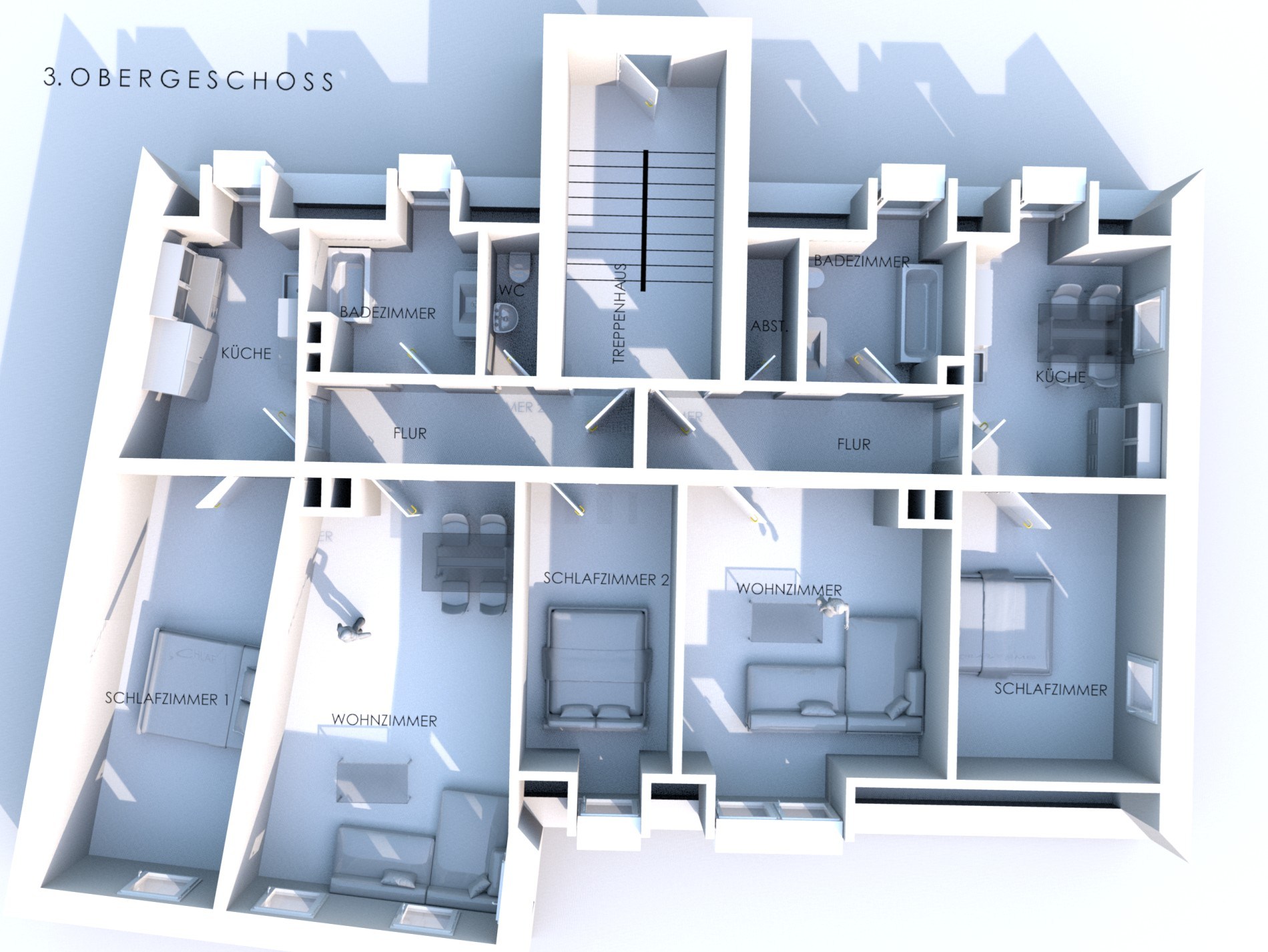 - Wohnungen entweder mit Abstellräumen oder Bad und WC getrennt oder beides