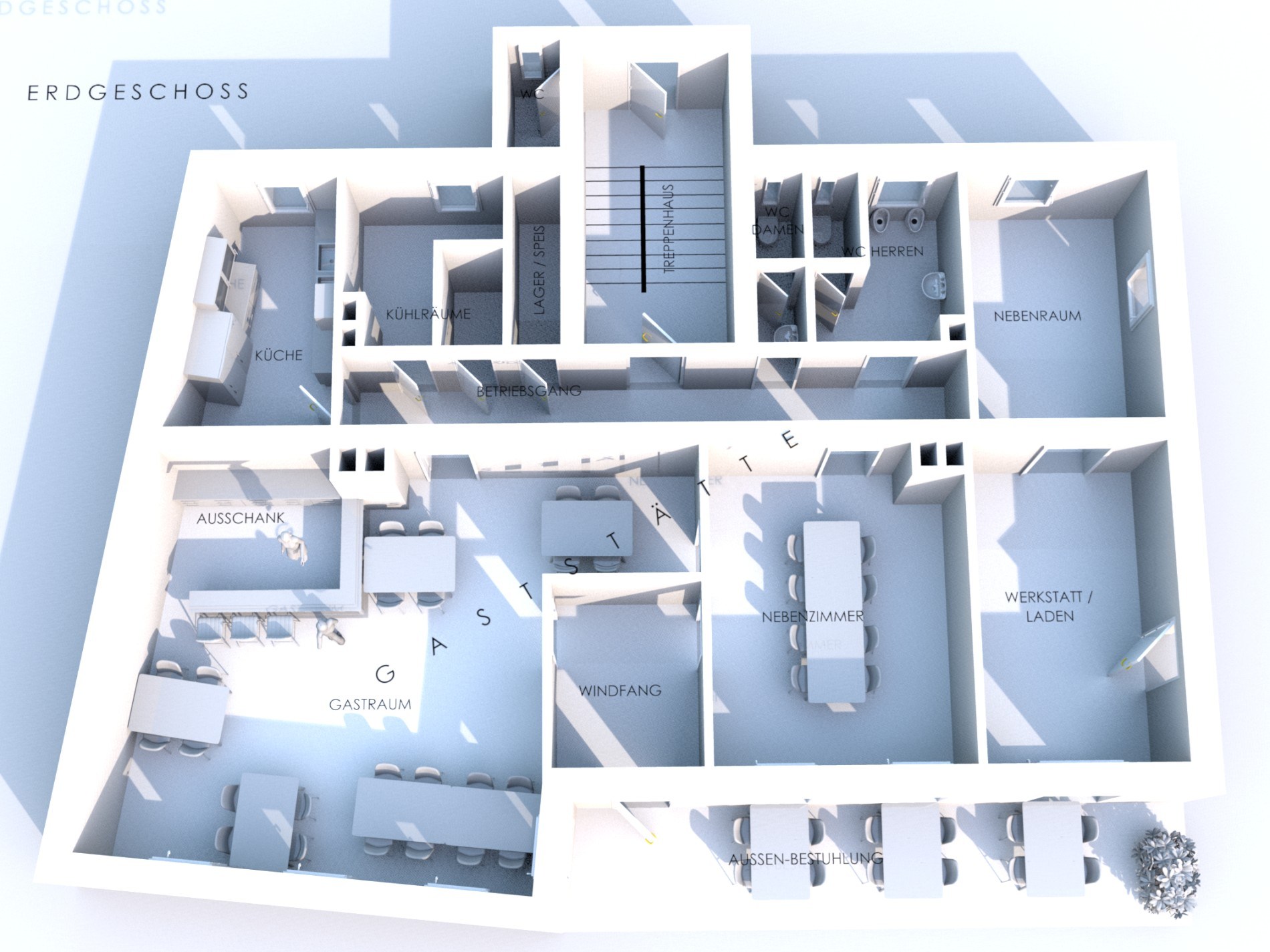 Die Immobilie umfasst insgesamt 6 Wohneinheiten sowie eine Gewerbeeinheit im Erdgeschoss, die derzeit als Gastronomiefläche genutzt wird. Ein Teil dieser Gewerbefläche ist aktuell zusätzlich als separate Werkstatt mit Lagerraum abgetrennt.